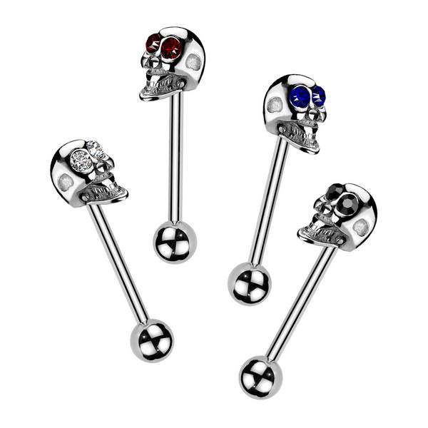 Штанга из хирургической стали 316L в форме черепа со стразами.