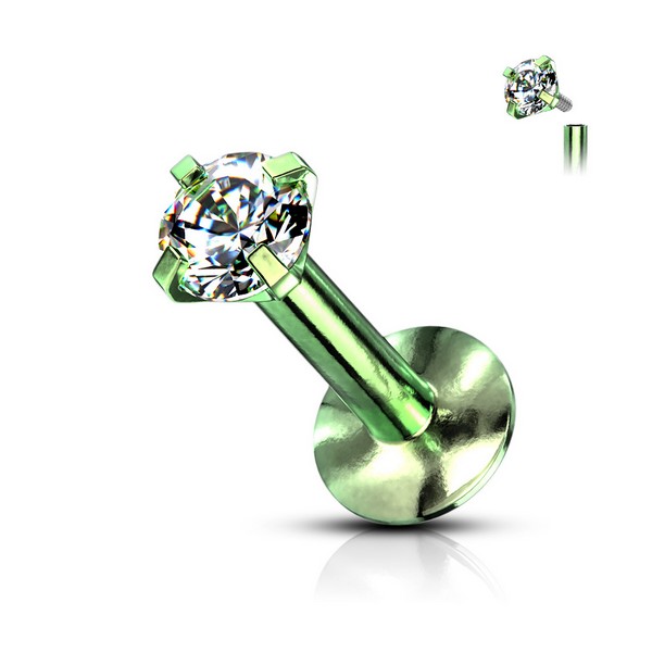 Лабрет с внутренней резьбой из хирургической стали 316L с титановым анодированием.