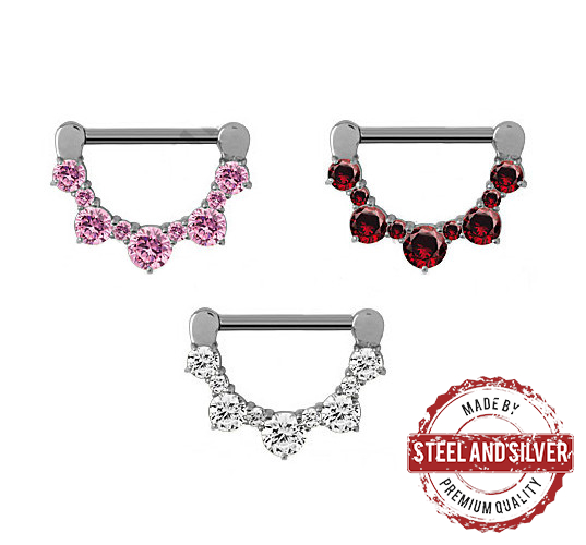 Кликеры для груди из хирургической стали 316L с фианитами.