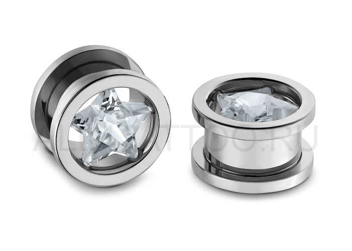 Тоннели хирургической стали 316L с крупным стразом-звездой.