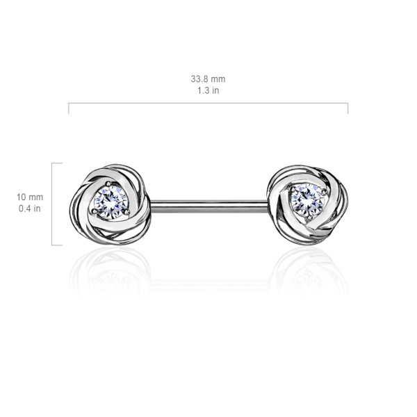 Украшение для груди со штангой из хирургической стали 316L с розами из родированной латуни, украшенными стразом по центру.