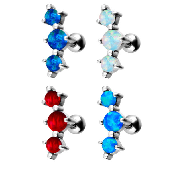 Микроштанга из хирургической стали 316L с кластером из трёх опалов.