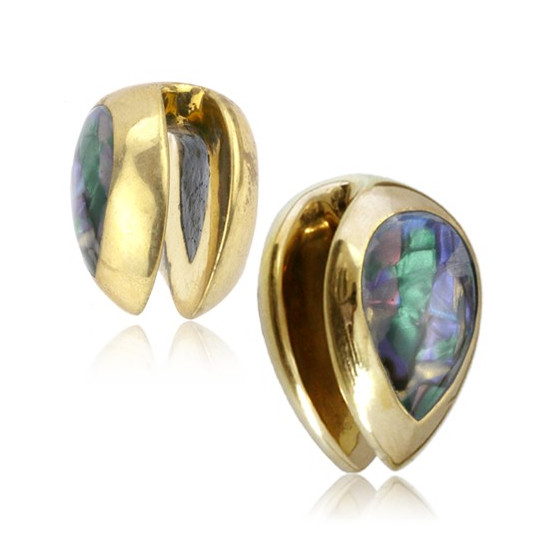 Подвесы каплевидной формы из латуни украшены вставками из перламутра.