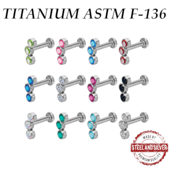 • Лабрет из титана Steel and Silver с тремя кристаллами