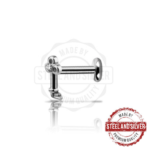 Лабрет с внутренней резьбой из хирургической стали 316L. Накрутка размером 7мм украшена Premium Zirconia.