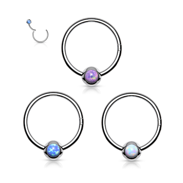 Кольцо из хирургической стали 316L с шариком, украшенным  лабораторным опалом.