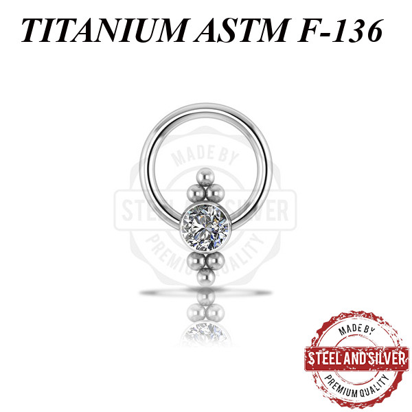 Кольцо из имплантационного титана 6Al-4V-Eli ASTM: F-136 украшено кластером с премиальным кристаллом.