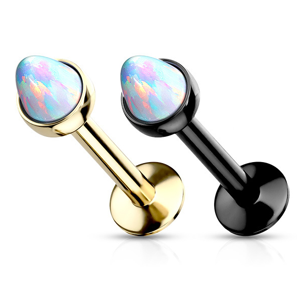 Лабрет с внутренней резьбой из хирургической стали с PVD покрытием. Украшен конусом из искусственного опала.