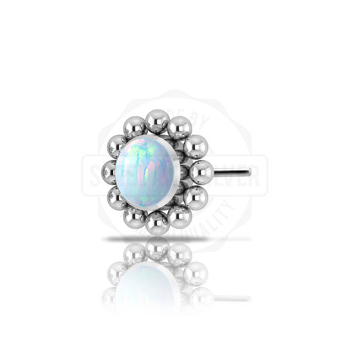 Вставка из имплантационного титана 6Al-4V-Eli ASTM: F-136 для безрезьбовых украшений. Украшена лабораторным опалом диаметром 3мм.