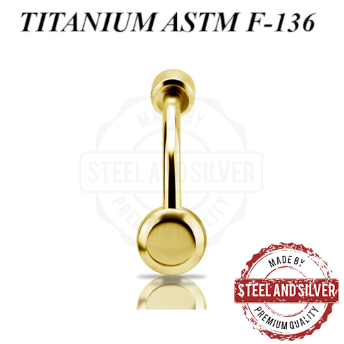 Банан с внутренней резьбой из имплантационного титана 6Al-4V-Eli ASTM: F-136 с PVD покрытием 24х каратного золота. Украшен кристаллами Premium Zirconia размерами 4 и 6мм.