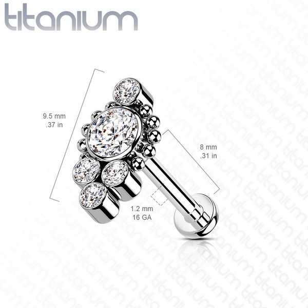 Лабрет из имплантационного титана 6Al-4V-Eli ASTM: F-136 с внутренней резьбой. Размер кластера - 6х9,5мм.