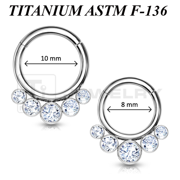 Кликер из имплантационного титана 6Al-4V-Eli ASTM, украшенный пятью фианитами.