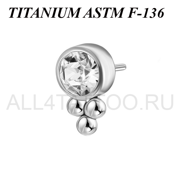 Вставка из имплантационного титана 6Al-4V-Eli ASTM: F-136 для безрезьбовых украшений. Украшена прозрачным фианитом. Размер декоративной части: 3х5,5мм.