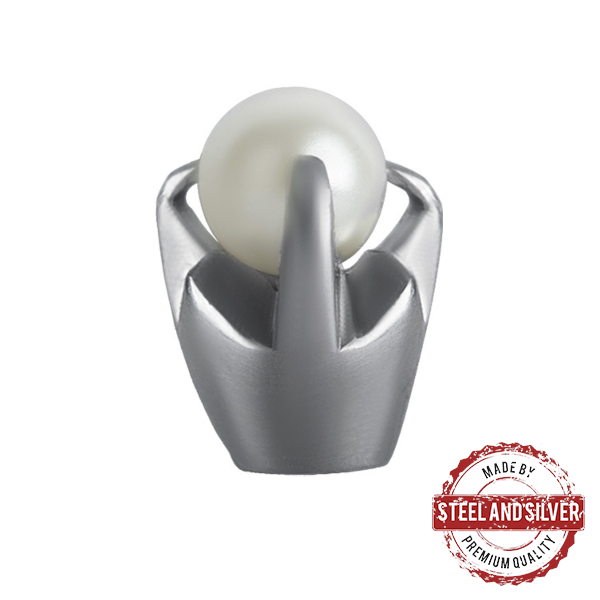 Накрутка из хирургической стали 316L, с имитацией жемчужины. Подходит для украшений толщиной 1,6мм с внешней резьбой. В описание указан диаметр накрутки с учётом лапок.