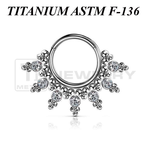 Эффектный кликер из имплантационного титана 6Al-4V-Eli ASTM: F-136. Украшен миниатюрными титановыми шариками и прозрачными фианитами.