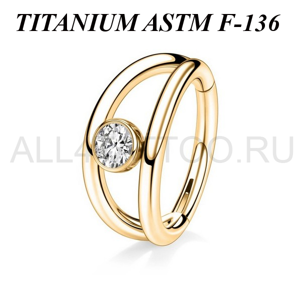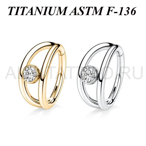 Кликер из имплантационного титана 6Al-4V-Eli ASTM: F-136 с прозрачным фианитом. Представлен в двух вариантах: классический титановый и с золотым PVD покрытием.