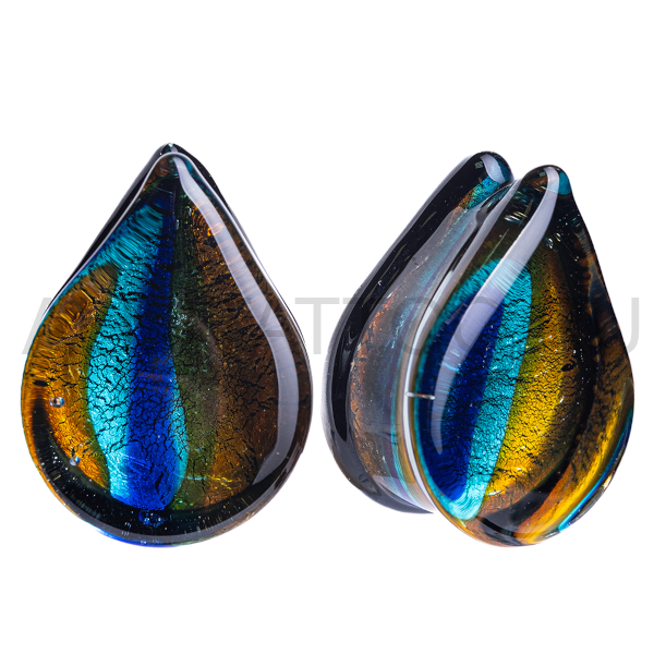 Плаги-капли ручной работы из боросиликатного стекла с полосами разного цвета.
