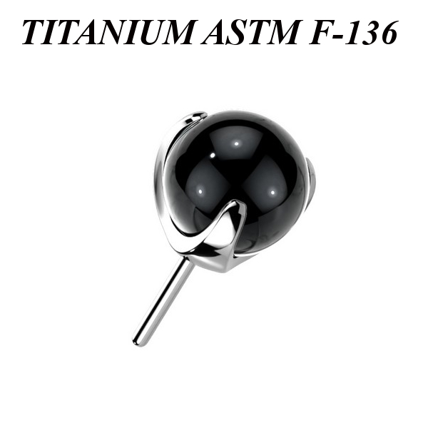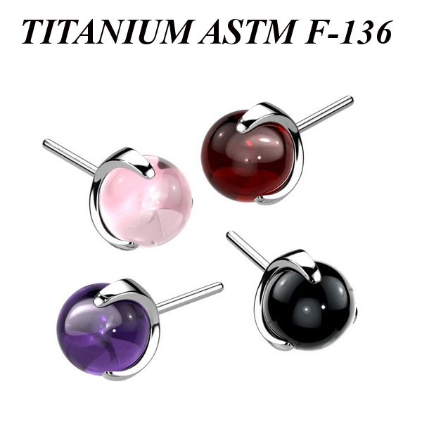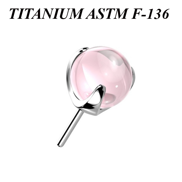 Вставка из имплантационного титана 6Al-4V-Eli ASTM: F-136 для безрезьбовых украшений. Украшена цветным стеклянным шариком.