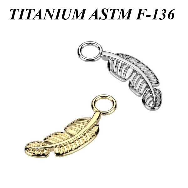 Подвеска из имплантационного титана 6Al-4V-Eli ASTM: F-136. Представлена в двух вариантах: классическая титановая и с золотым PVD покрытием. Размер пера: 4х11мм. Подходит для украшений толщиной не более 2мм.