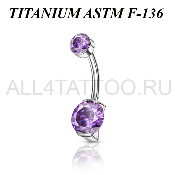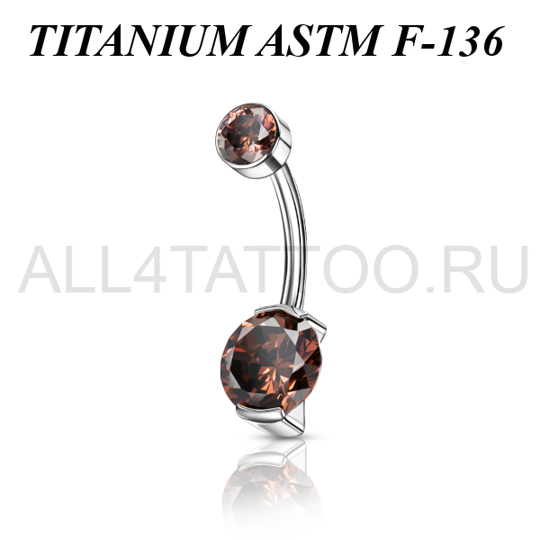 Банан из имплантационного титана 6Al-4V-Eli ASTM: F-136 с внутренней резьбой. Украшен фианитами. Диаметр нижнего кристалла - 8мм, верхнего - 5мм.